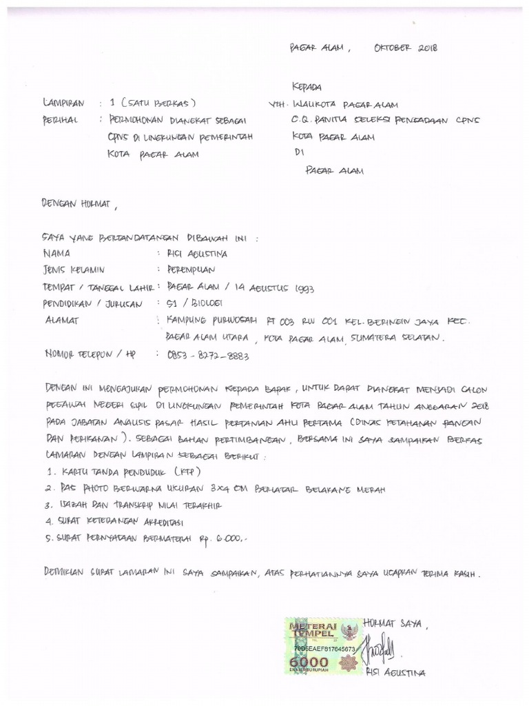 Contoh surat lamaran kerja umum, simple, tulis tangan, terbaru, yang baik dan benar terlengkap ini saya buat kepada para pencari kerja agar bisa digunakan untuk melamar pekerjaan diperusaaan sesuai dengan posisi yang dibutuhkan oleh perusahan yang sedang membuka lowongan pekerjaan. Itulah contoh surat lamaran pekerjaan yang ditujukan bagi anda yang tertarik untuk berkarir di instansi pemerintah. Demikian surat lamaran ini dibuat. Juni 30, 2021 pada dijamin lolos seleksi hrd, begini contoh surat lamaran kerja yang benar. Demikian surat lamaran ini dibuat.